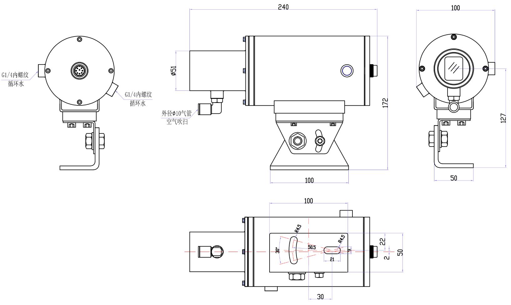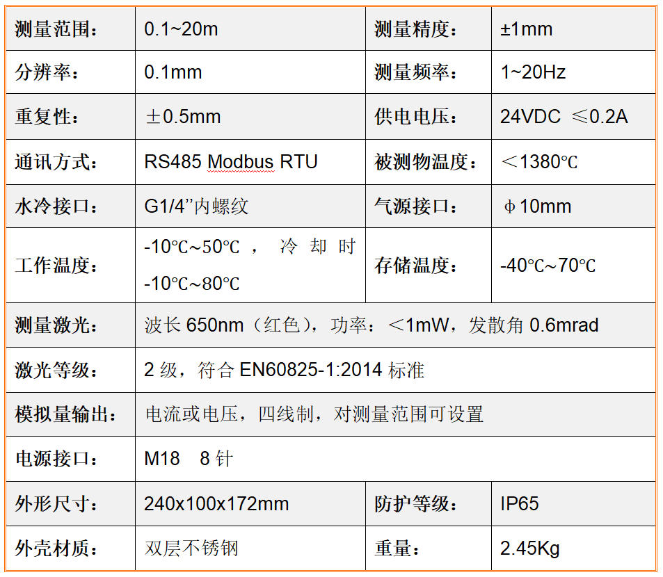 HMLDM-SJ20HT型超高温激光束测距仪特别于超高温固态物体、介质的认知度、尺寸、特别的勘界。经过工作摹拟量和RS485光纤通信将勘界数据库传送向上位消化液系。● 相(♊xiang)位差丈量(liang)道理(li),丈量(liang)精(jing)度(du)𒁏±1mm,反复精(jing)度(du)±0.5mm,分辩率0.1mm