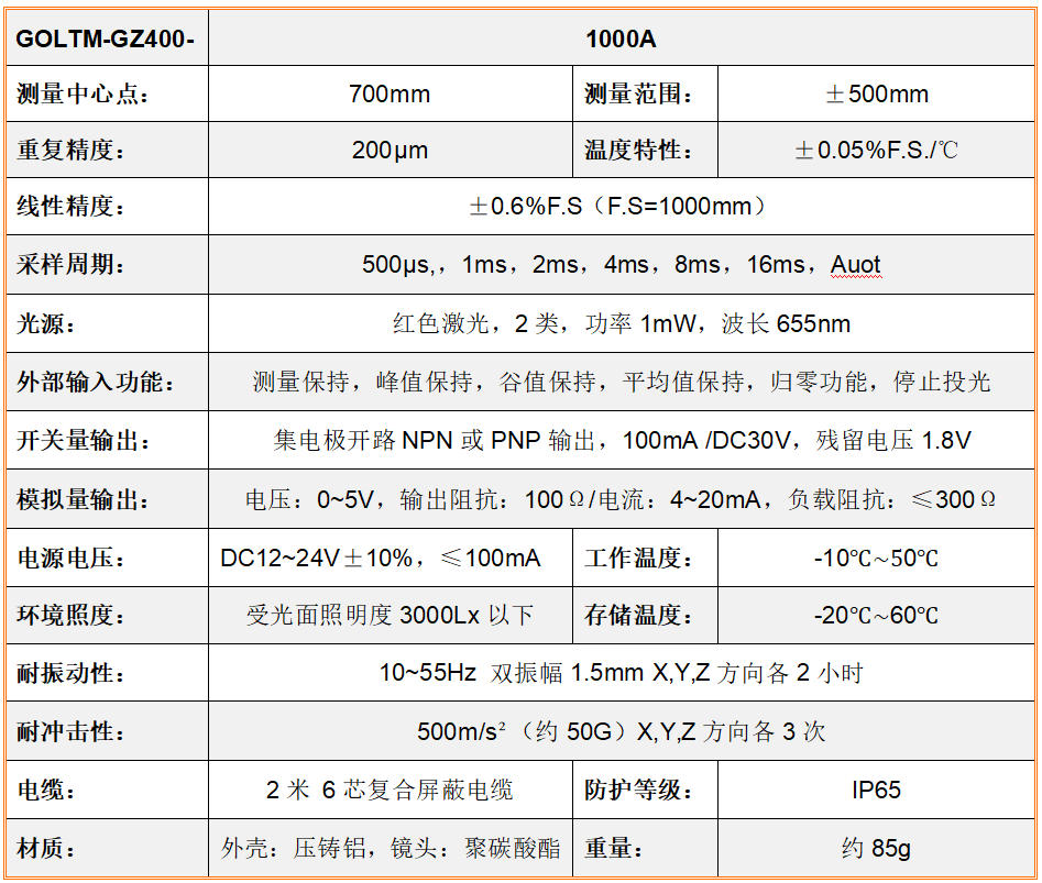 GOLTM-GZ400-1000A型严密智能机械测距仪也可以于高误差、高传输速率的测量物品位移、厚度、位置及位置差,平衡装置调试程序简要,手机数码凸显丝毫连续或丝毫连续,符合摹拟量设置及按钮量设置。● 激(ji)光三角形(xing)丈量(l⛄iang)道理,高(gao)精度(du)、高(gao)速率、高(gao)活(huo)络度(du)丈量(liang)细小位移(yi)
